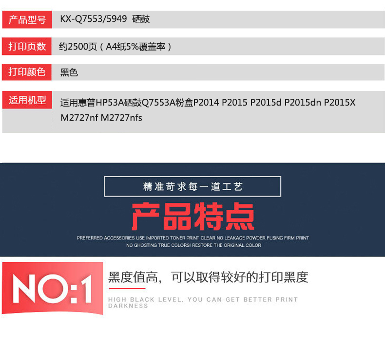 凱欣標(biāo)準(zhǔn)版 KX-Q7553/5949粉盒 適用惠普HP53A硒鼓Q7553A粉盒P2014 P2015 P2015d P2015dn 全國統(tǒng)一價(jià):146元