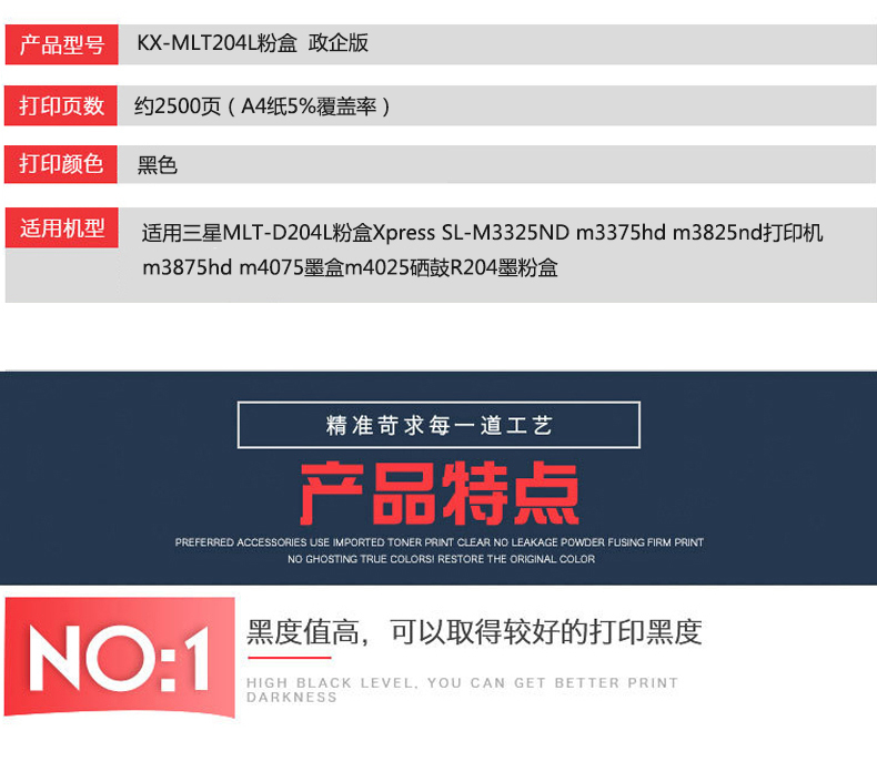 凱欣政企版 KX-MLT204L 適用三星MLT-D204L粉盒Xpress SL-M3325ND m3375hd m3825nd打印機 全國統一價:186元