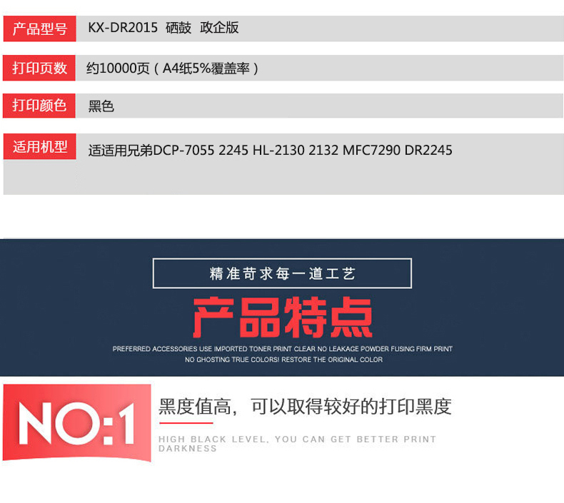 凱欣KX-DR2015 KX-2015硒鼓適用兄弟DCP-7055 2245 HL-2130 2132 MFC7290 DR2245 全國統(tǒng)一價:189元