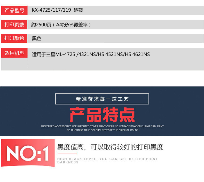 凱欣標(biāo)準(zhǔn)版 KX-SCX4725/117/119粉盒 適用于三星 ML-4725 /4321NS/HS 4521NS/HS 新款/4621NS 全國(guó)統(tǒng)一價(jià):166元